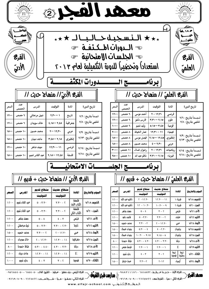 | التسجيل حالياً للدورة المكثفة والجلسات الامتحانية استعداداً وتحضيراً للدورة التكميلية 2013 |