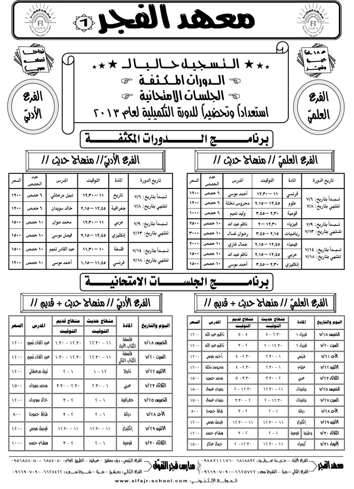 | التسجيل حالياً للدورة المكثفة والجلسات الامتحانية استعداداً وتحضيراً للدورة التكميلية 2013 |